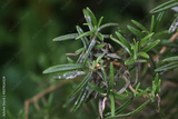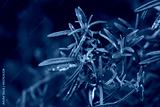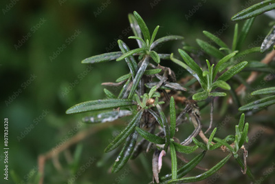 Close-up of Rosemary plant with disease in the garden. Rosmarinus officinalis leaf with gray spots