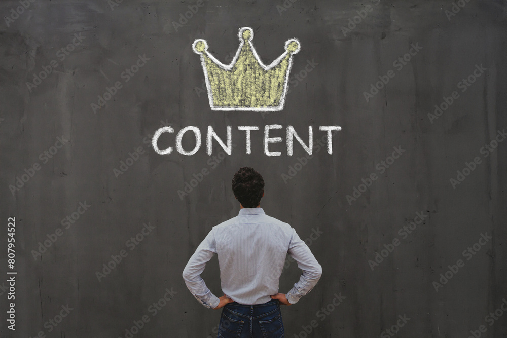 Content is king, concept on chalk board. Influencer or content marketing.