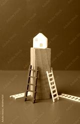 Buying your own home becomes an unattainable dream. The ladder symbolizes an affordable mortgage. increasing bills. Inability to maintain housing.
