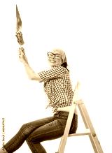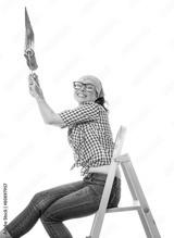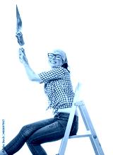 House painter, Worker woman with paint roller and brush