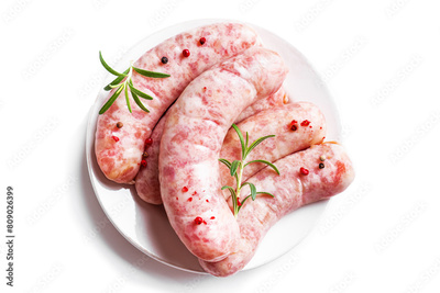 Raw sausages with spices and rosemary