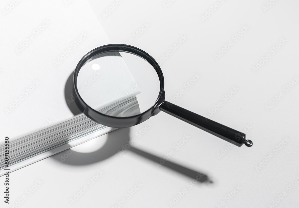 Exploration and research with magnifying glass. Single lens for discovery, search magnification