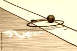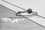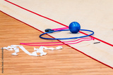 Rhythmic gymnastics equipment, hoop, ball, ribbon, rope and spikes on a mat