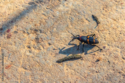 Cactus weevil, Prickly pear weevil or cactus gargajo, black insect cactophagus spinolae, dryophthoridae in monte escobedo zacatecas