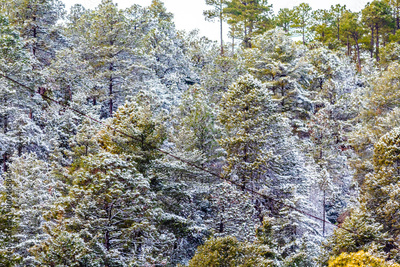 Mountains and snowy forest in winter in the Tarahumara mountain range in Creel Chihuahua