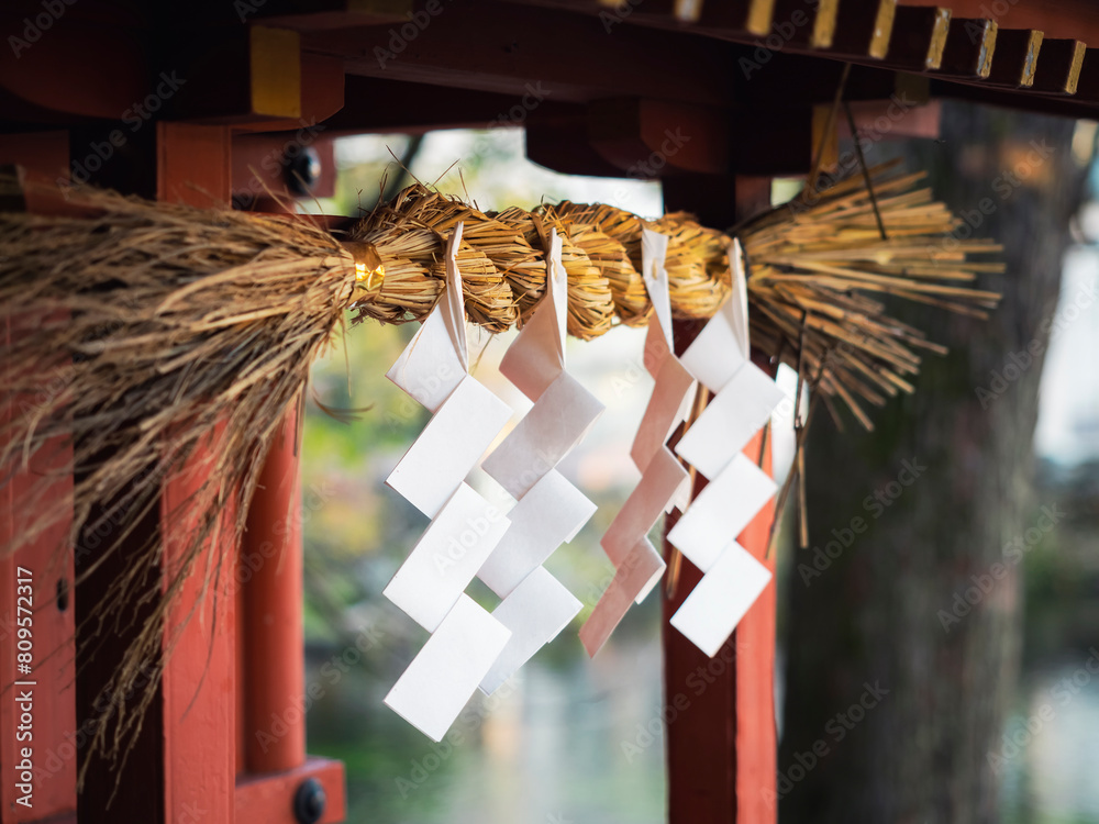 Shimenawa The sacred rope hanging at Shrine gate Japan Culture