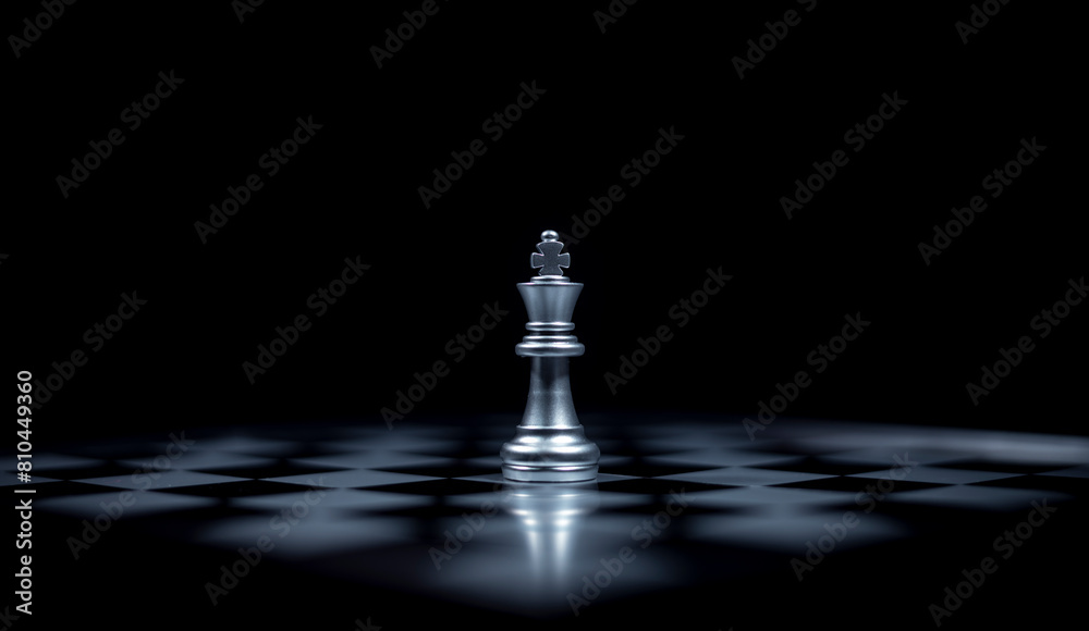Chess board game in silver team show strategy game as business Challange competitive game ,chessboard this is business strategy plan concept with black background.