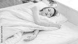 Asian female beautiful woman sleeps, sweet dream in bed on bedroom in the morning, Comfortable bed with pillows and blanket white bedding feeling so relax at home. Healthcare concept