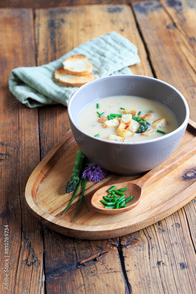 Spargelcremesuppe mit selbstgemachten Croûtons