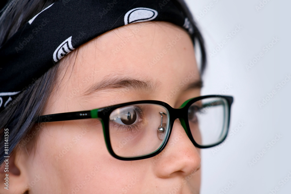close up part child face, boy 10 years old, human eye looking directly, concept surveillance, vision examination, diagnosis, treatment ophthalmic diseases, eyelids, emotional development children