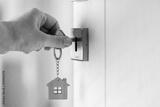 Woman hand opening a door with key