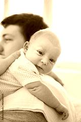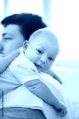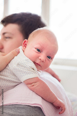 Young father burping a newborn baby girl after feeding