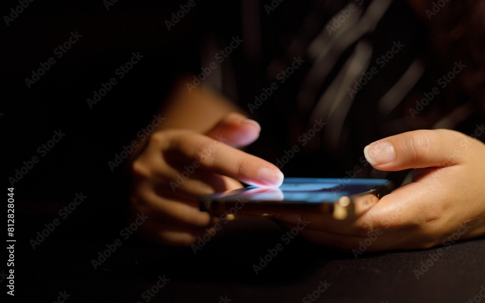 Woman hand scrolling on smartphone