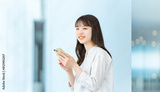 スマートフォンを持つ笑顔のビジネスウーマン