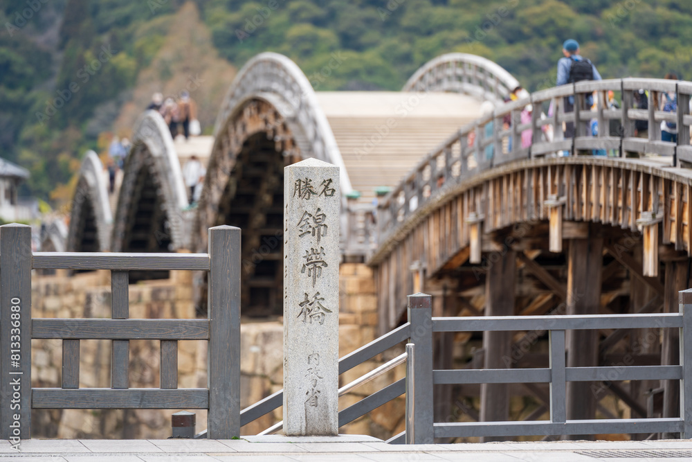 Kintai Bridge. Iwakuni, Yamaguchi Prefecture, Japan. Translation : "The National Site of Scenic Beauty, Kintaikyo Bridge."