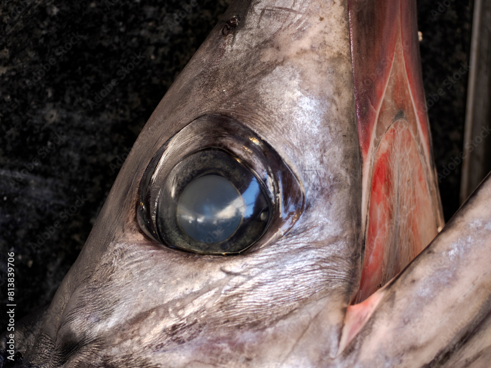 eye of fresh swordfish seafood at Ortigia Syracuse sicily fish market Italy