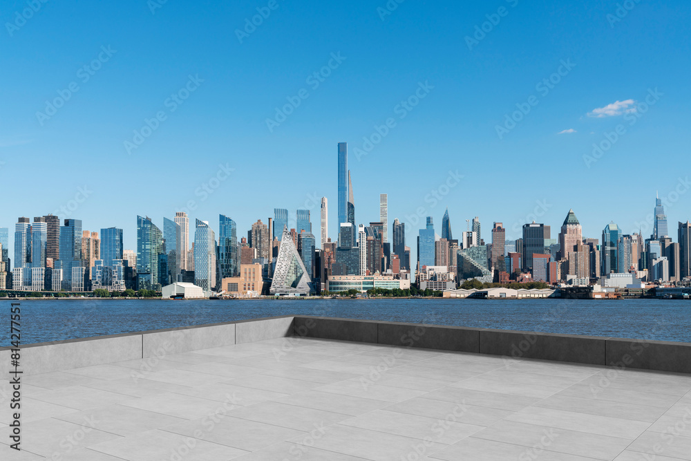 Skyscrapers Cityscape Downtown, New York Skyline Buildings. Beautiful Real Estate. Day time. Empty rooftop View. Success concept.