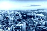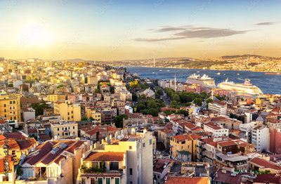 Panorama of Istanbul at sunset, Turkey. Aerial view of famous city.
