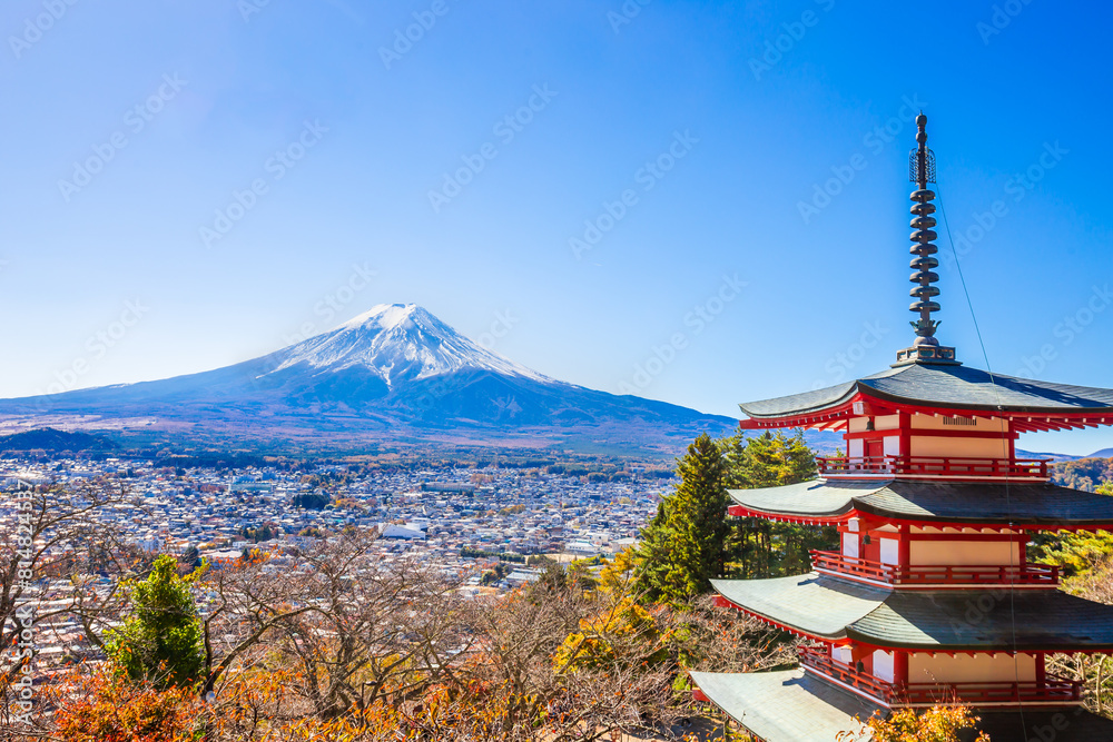 Chureito Red Pagoda is a five-story pagoda with a beautiful backdrop of Mount Fuji, a popular and famous place considered a symbol of Japan.