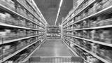 Shopping Cart View on a Supermarket Aisle and Shelves - Image Ha