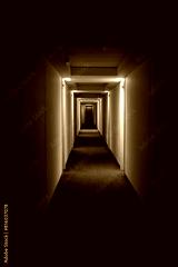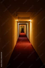 Long corridor with doors and lighting.