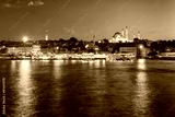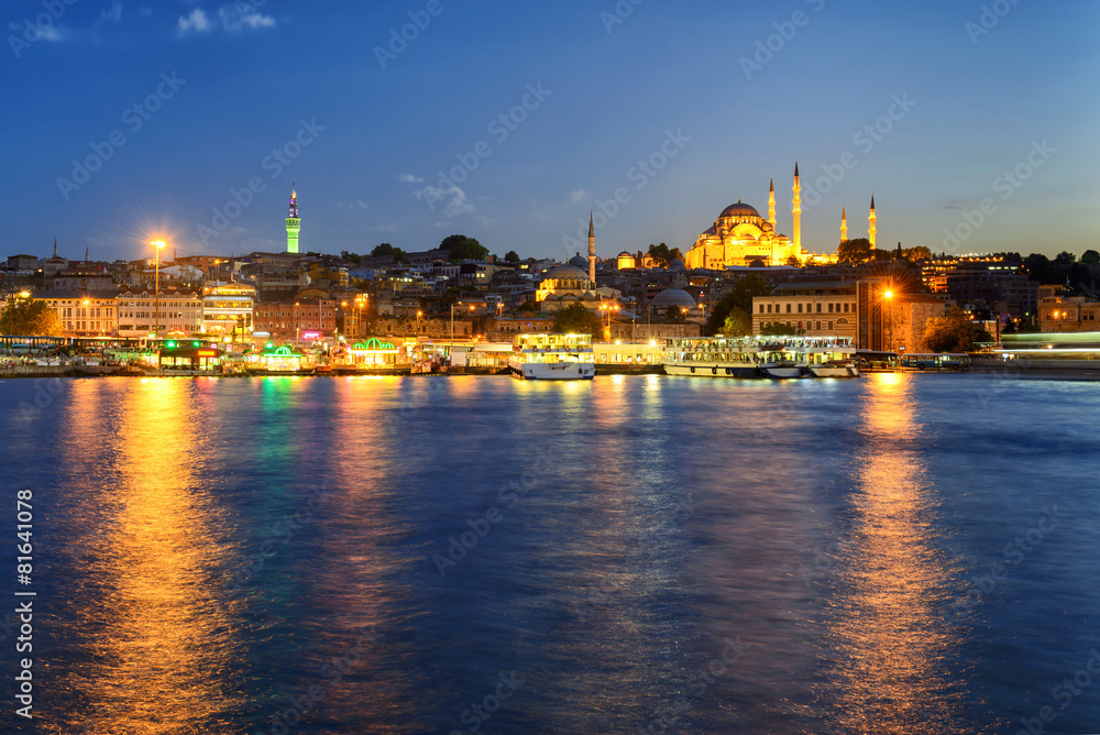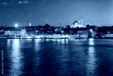 Panorama of old Istanbul city center at night, Turkey