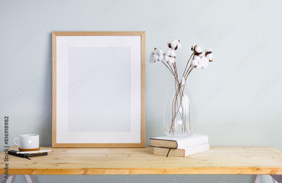 Blank picture frame template on the wall