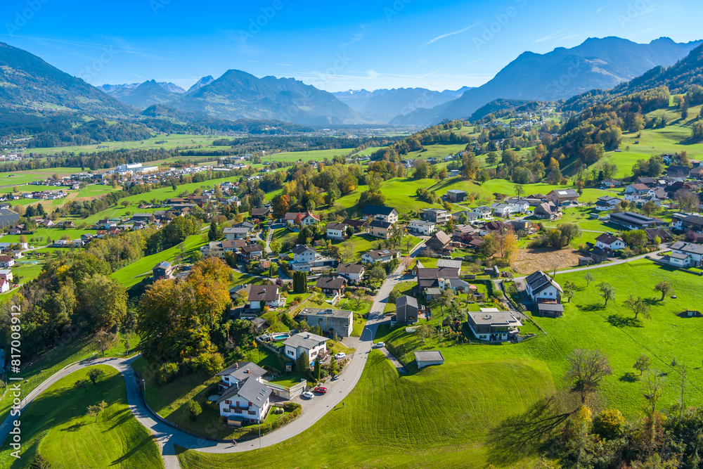 The village of Frastanz in the Walgau Valley, State of Vorarlberg, Austria. Drone Pictures