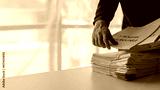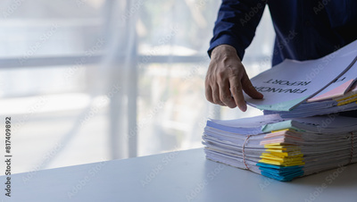 The employee checked the important details of the documents on the table and was looking for important documents.