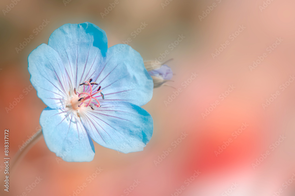 Close up view of Geranium Rozanne flower with shallow depth of field.