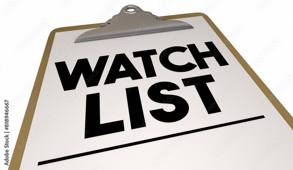 Watch List Clipboard Keep Track Watchlist Important Things 3d Illustration
