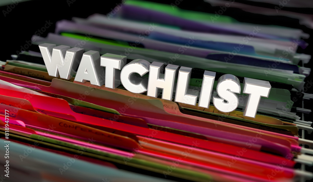 Watchlist File Folders Track Important Documents Watch List 3d Illustration