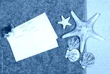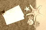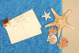 Old vintage retro postcard post card on a summer vacation tropical holiday beach with starfish and seashell photo