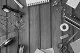 Working on a Wooden Table