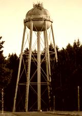 A water tower on the military base.