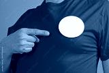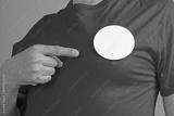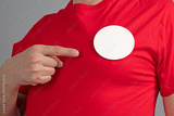 Round badge sticky label mockup template. Pin button on chest. White tags, paper round stickers, isolated rounded signs, circle adhesive symbol