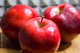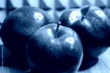 Glossy Apples. Apples with a shiny finish against a dark patterned background.