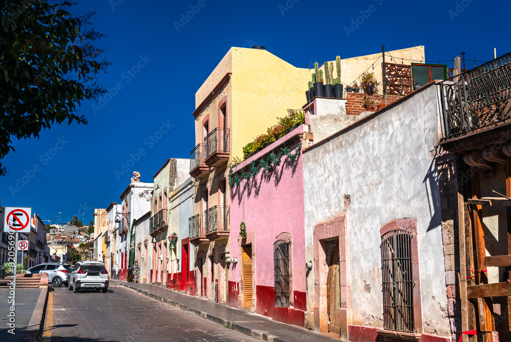 Traditional houses in the old town of Zacatecas, UNESCO world heritage in Mexico