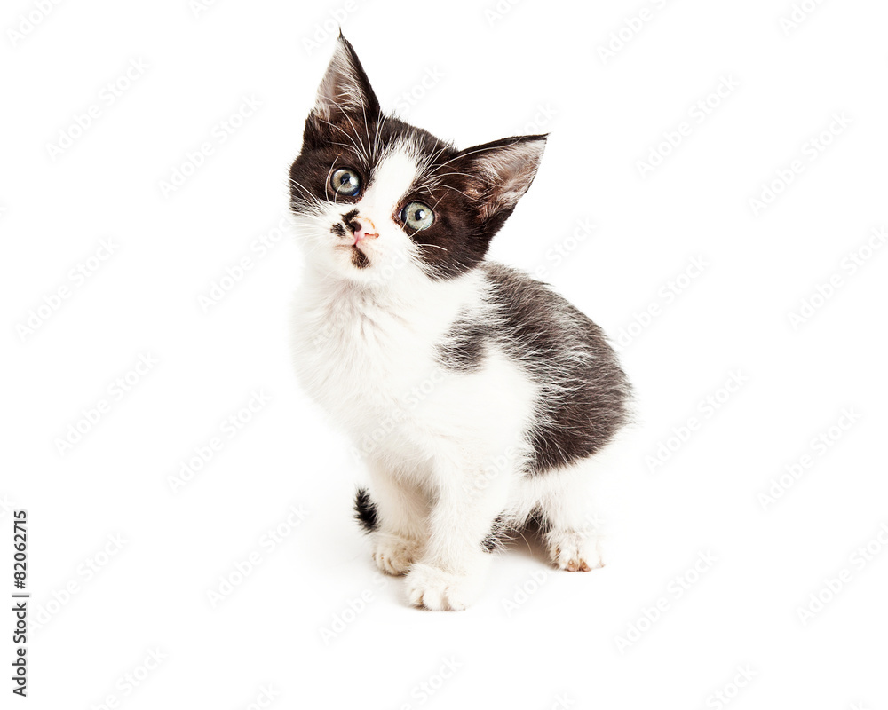 Cute Little Black and White Kitten Sitting