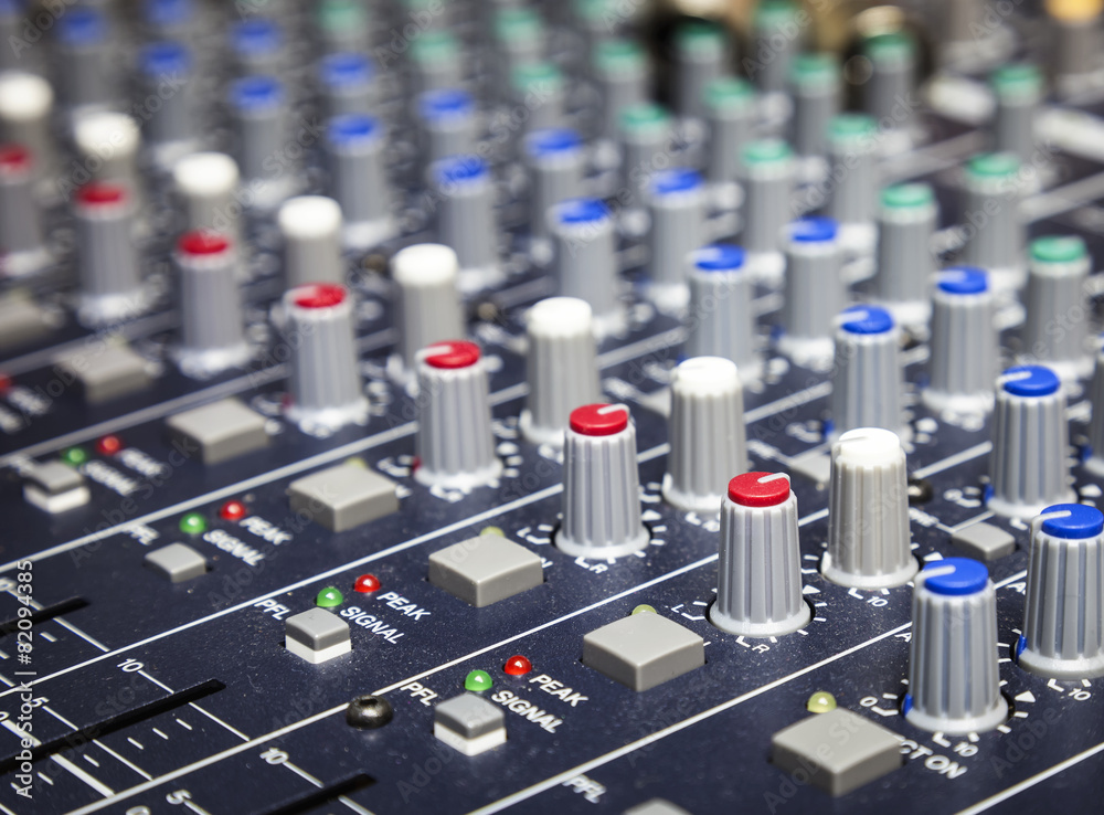 Music control buttons, Studio music mixer equipment