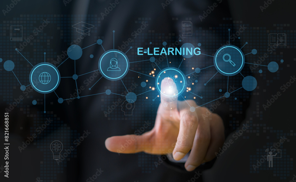 Human with technology internet learning and study online class webinar technology, e-learning, online education, education, training, tutor, video lesson, course, knowledge in homeschool