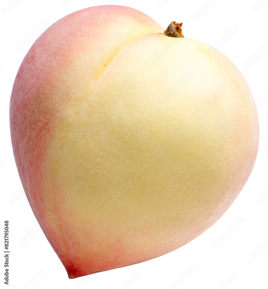 Sweet Chinese Peach isolated on white background, Fresh Peach on White Background PNG File.