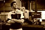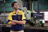 worker or engineer smiling and folded arms pose with lathe machine in the factory