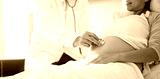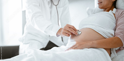 stethoscope, pregnancy, motherhood, pregnant, childbirth, healthcare, patient, heartbeat, hospital, mother. A doctor is examining a pregnant woman. The doctor to listen to the baby's heartbeat.