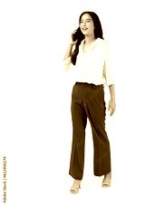 Cheerful young Asian businesswoman standing with talking on mobile phone on white background.