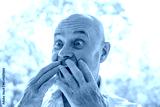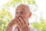 65-year-old eccentric man very surprised, senior showing grimaces, winks, mischievous grin, embracing life's absurdities, funny oddball, unafraid to be himself and bring laughter