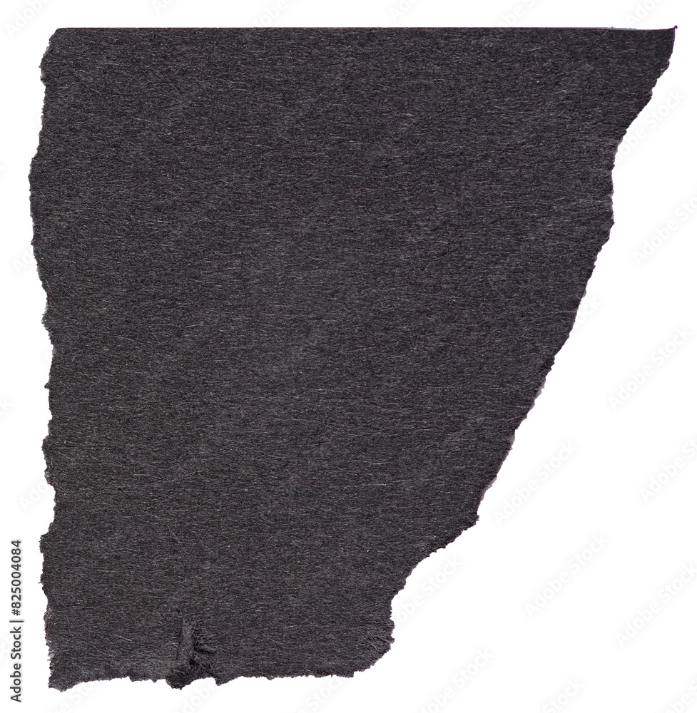 Isolated cut out torn piece of blank black paper note cardboard with texture and copy space for text, transparent png background design element