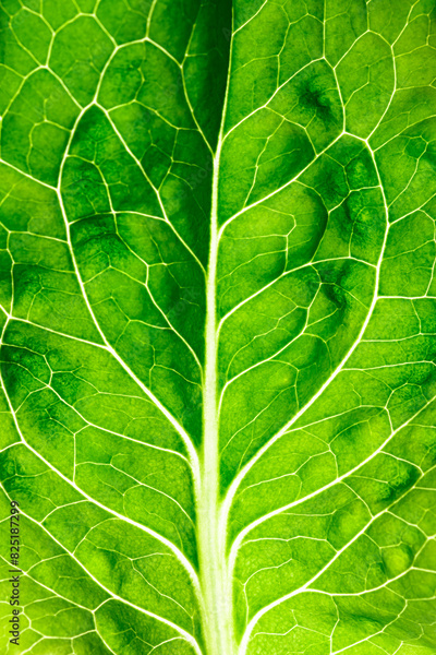 Close-up of vibrant green lettuce salad leaf. Texture of fresh organic food for healthy lifestyle