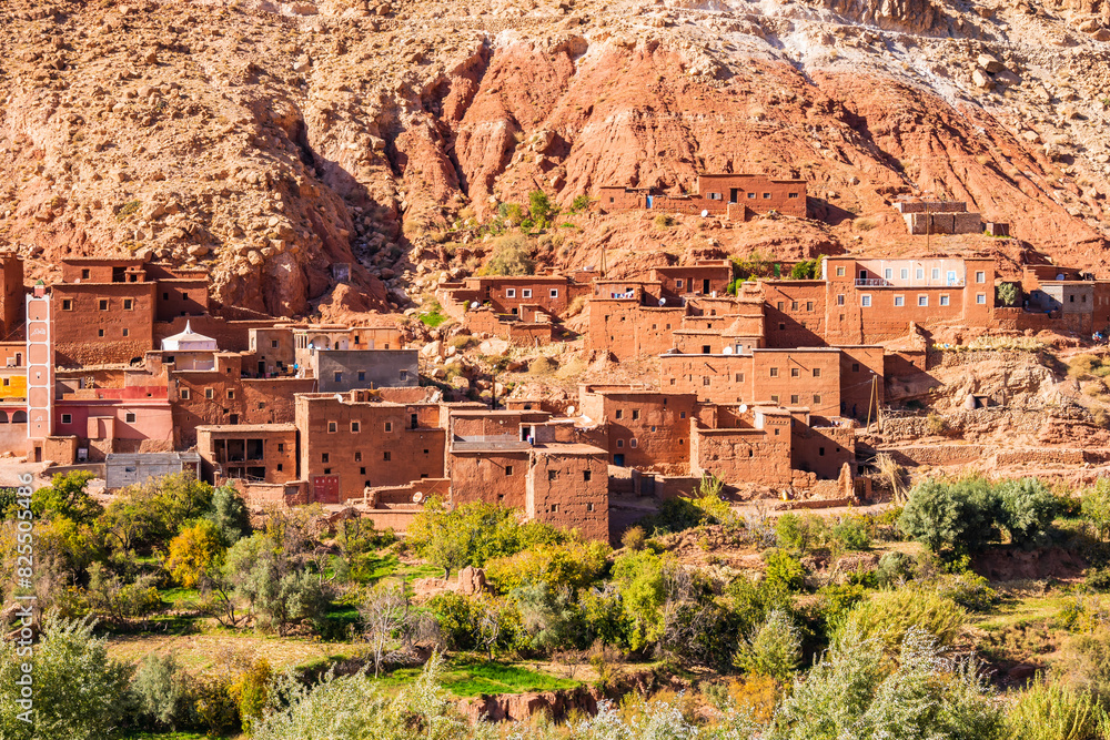 View of old ancient village in Dades valley between Telouet and Anmiter towns in Atlas Mountains, Morocco, North Africa