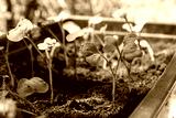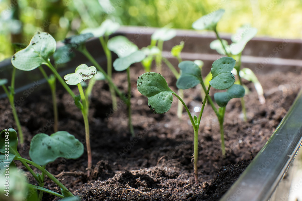 zielone sadzonki rzodkwi w donicy na wiosnę